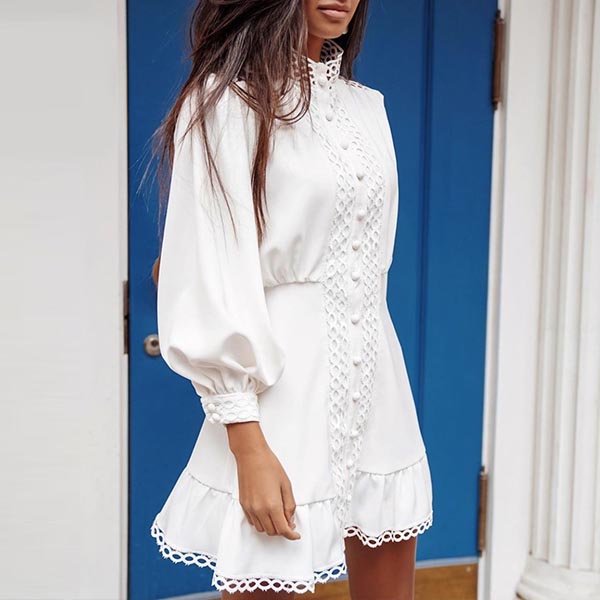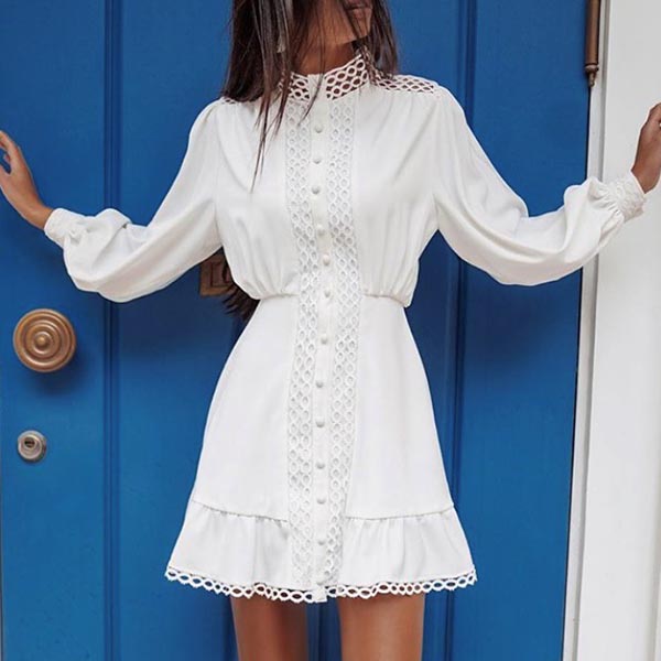 When you have a dating with your boyfriend,you can choose this dress to express your beautiful and feminine side. Solid color style,finished with long sleeve,stand collar and hollow out lace spliced details,sexy yet flirty. You can easily create a sassy and beautiful dating look with this dress.