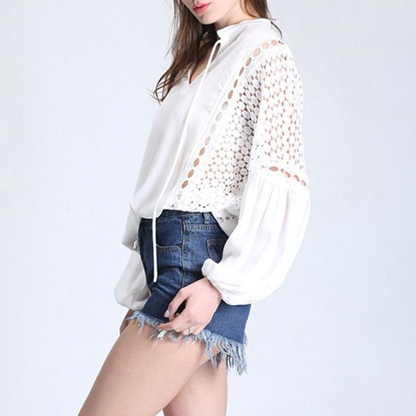 breezy fabric with a loose silhouette makes this piece comfortable to wear. On the other hand,the hollow out lace spliced and