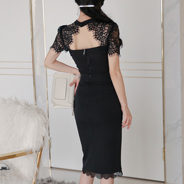 When invited to a dinner date or weekend gathering,you can trust in this two-piece set to arouse a splash. The hollow out lace spliced details and slit hem design make it look so sexy and alluring. Including a short sleeve top and a high waist skirt,this two-piece set definitely can portray your charming and feminine image.