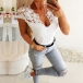 Sexy Hollow Out Lace Spliced Short Sleeve V-neck Slim Fit T-shirt