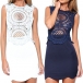 Designed with sleeveless,round ne ck,a fit silhouette and hollow out lace spliced details,this dress definitely knows