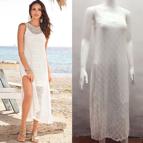 by this beach dress! Sling style,with hollow out spliced design,sexy and chic.