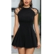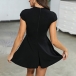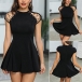 Sexy Hollow Out Lace-up Cap Sleeve High Waist Solid Color Dress
