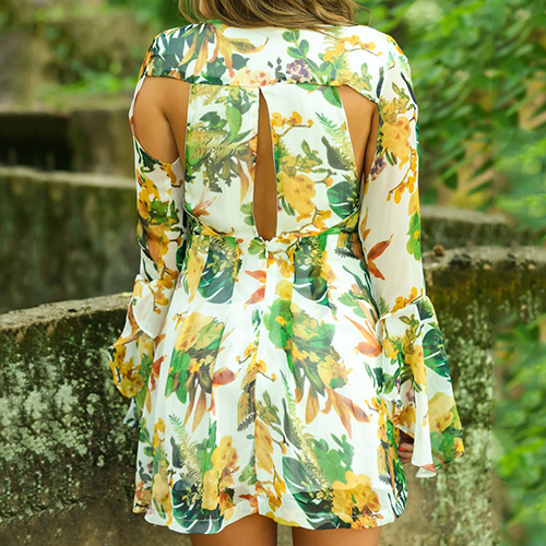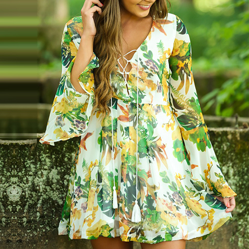 Add a touch of sweet,romantic and flirty vibe to your wardrobe ensemble with this dress. Boasting vibrant floral print,