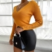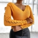 Sexy Hollow Out Lace-up Long Sleeve V-neck Solid Color Knit Top