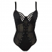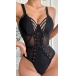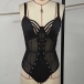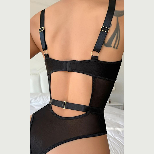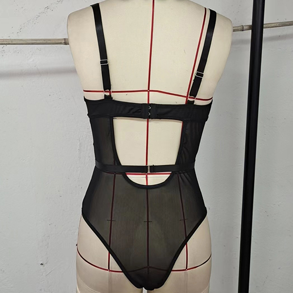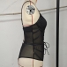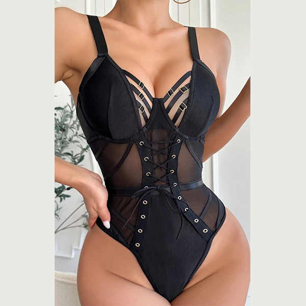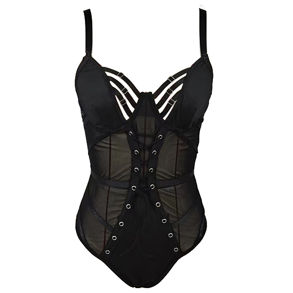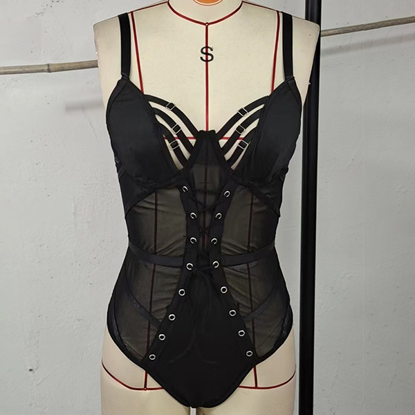 Sexy Hollow Out Lace-up Semi-through Gauze Spliced Lingerie Bodysuit