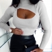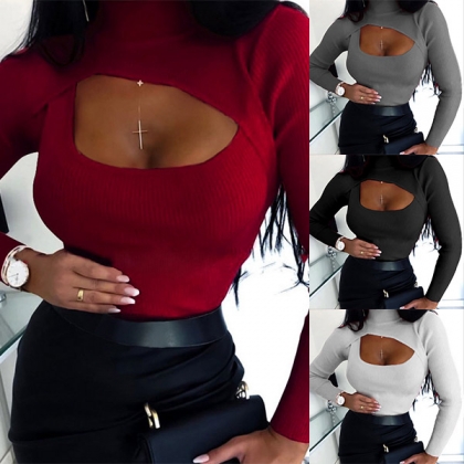 Sexy Hollow Out Long Sleeve High Collar Slim Fit Top