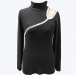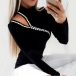 Sexy Hollow Out Long Sleeve Mock Neck Slim Fit T-shirt