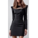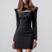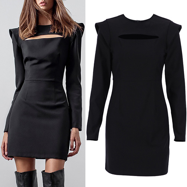 For every girl,a little black party dress is an essential. So what are you waiting for if you still not have one? The black tone stands for flattering and mysterious sense,while the hollow out design at the chest part will make you look more alluring. Finished with long sleeve,round neck and a fit silhouette,this dress is perfect fit for your fancy events.