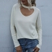 Sexy Hollow Out Long Sleeve Round Neck Solid Color T-shirt