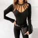 Inject a dash of sexy and flirty vibes to your wardrobe with this wonderful top. Comes with a classic yet flattering black tone,with a fit silhouette,this piece can showcase your perfect body-line. Moreover,the hollow out and pearls details will make this piece look more attractive. All-match design allows to be matched with different style bottoms.
