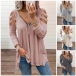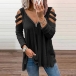 Sexy Hollow Out Long Sleeve Zipper V-neck Solid Color Loose T-shirt