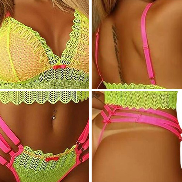 Sexy Hollow Out Low-waist Contrast Color Underwear Lingerie Set