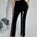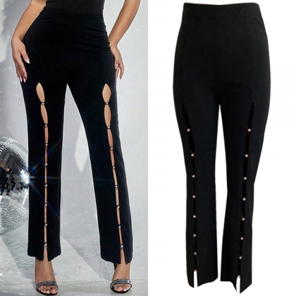 Crafted with high-quality fabric, these pants offer both comfort and style. The hollow-out detailing creates a visually stunning and provocative look, adding an element of intrigue and allure to your outfit.