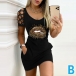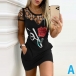 Sexy Hollow Out Short Sleeve Round Neck Slim Fit Rose/Lip Printed Dress