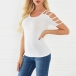 Combines of cozy and flirty vibes,this t-shirt is worth to arouse your attention. Solid color style,the hollow out and beaded details make this piece look so sexy and attractive. When you wear it,your style and charm can have an instant boost.