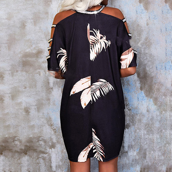 Sexy Hollow Out Short Sleeve V-neck Rhinestone Spliced Printed Dress