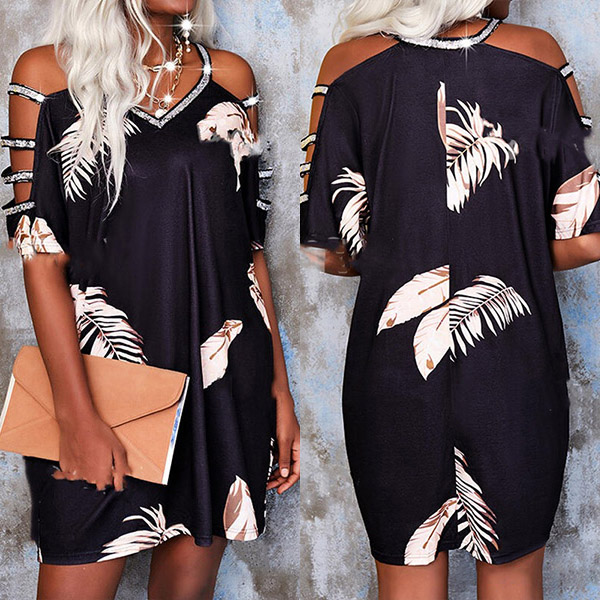 When you go out with this dress,you can easily win more eyes. The rhinestone details make this piece look so shinning and eye-catching,while the v-neck and hollow out design at the sleeve and shoulder part will offer you a more alluring and flirty look. For your sunny summer days,this piece can be your wise choice to make you stay comfy and stylish.