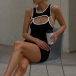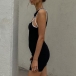 Sexy Hollow Out Sleeveless Round Neck Contrast Color Dress