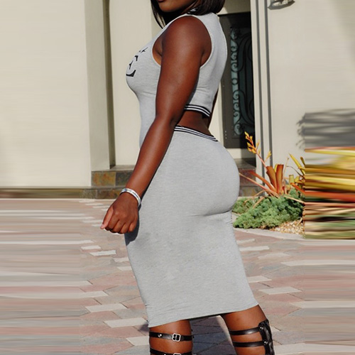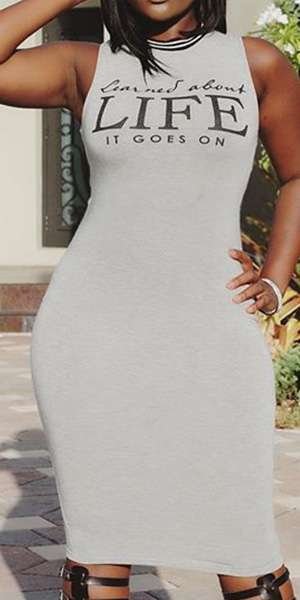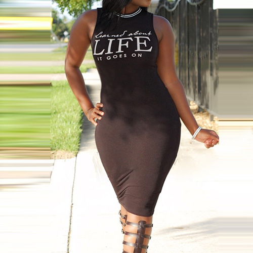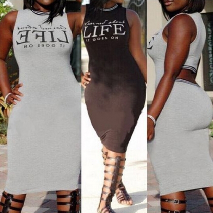 This dress features letters printed style,with sleeveless,round neckline and a fit silhouette design,