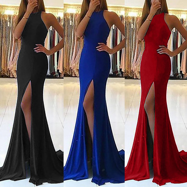 Still worrying about what to wear for the parties and gatherings? Then make your eyes focused on this floor-length dress. The slit hem and hollow out design at the back side make this piece look so sexy and alluring. You can easily be the prom queen or the party queen with this dress.