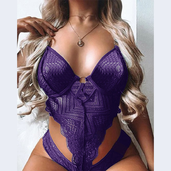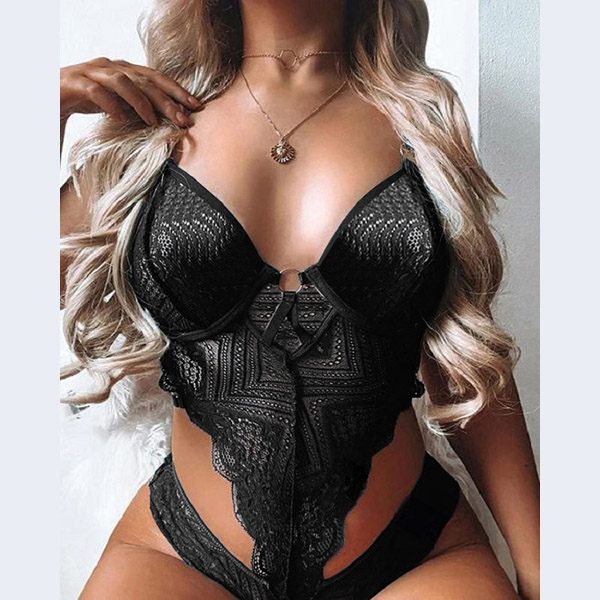 Inject a dash of sexy and alluring vibes to your simple and dull wardrobe with this one-piece lace lingerie. Solid color style,the hollow out and lace details make it look so sultry. If you are bold enough,you can just slip into this lace underwear to express yourself!