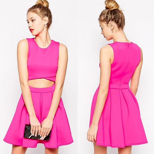 This dress features solid color style,waist part with hollow out design,stylish and sexy.
