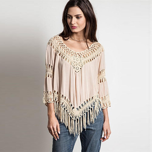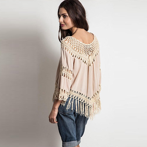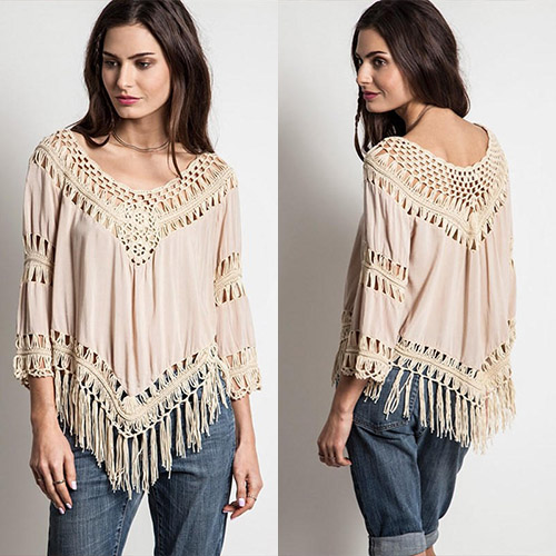 with v-neck,tassel hem and 3/4 sleeve design. Of course,you can also pair some sexy tops underneath.