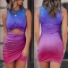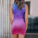 Sexy Hollow Out Twisted High Waist Irregular Hem Color Gradient Mini Dress