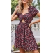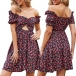 Sexy Hollow Out V-neck Short Sleeve Printed Dress for Summer Wear