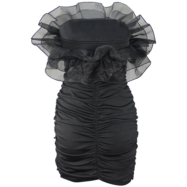 Sexy Irregular Hem Gauze Spliced Strapless Dress