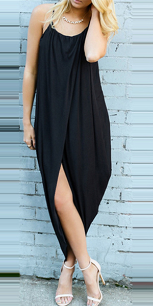 Sexy Irregular Hem Solid Color Loose Sling Dress