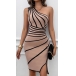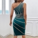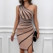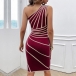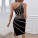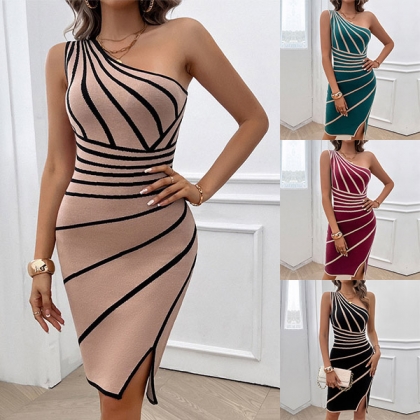 Sexy Irregular Stripe Printed One-shoulder Slit Bodycon Party Dress