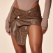 This mini skirt combines an irregular waist design and irregular hemline, artificial leather (PU) fabric, and a mini length for a bold and stylish look. This mini skirt is perfect for those who want to make a fashion statement with a sexy and contemporary piece.