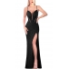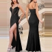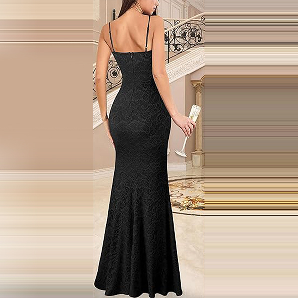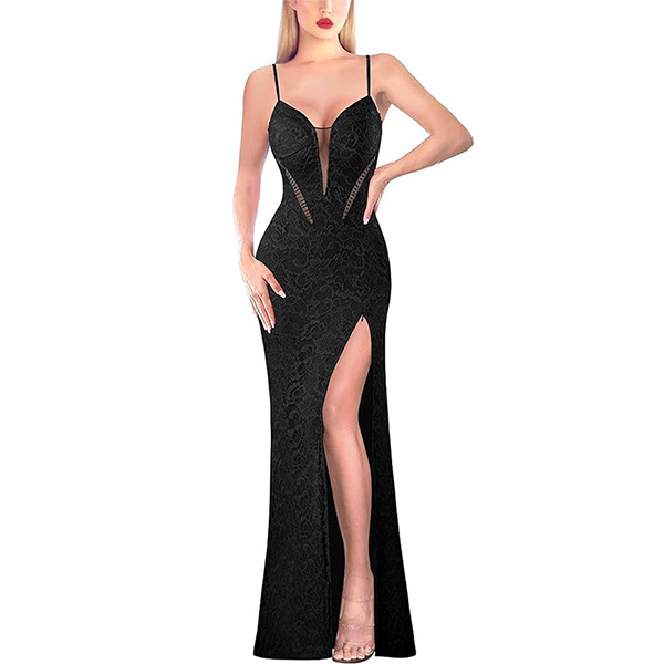This sexy and elegant party dress features a gauze spliced V-neckline and high slit, perfect for making a statement at any event. The jacquard material adds a touch of sophistication and texture to the look. Whether you're attending a formal event or a special occasion, this dress is sure to turn heads and have you feeling confident and beautiful.