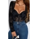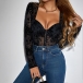 Sexy Jacquard Sweetheart Neckline Long Sleeve Corset Bodysuit