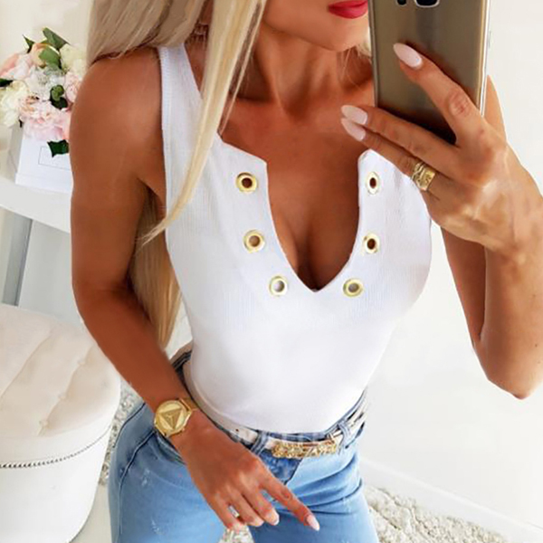 Sexy Keyhole V-neck Sleeveless Solid Color Slim Fit Tank Top