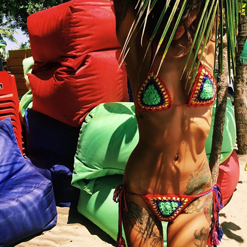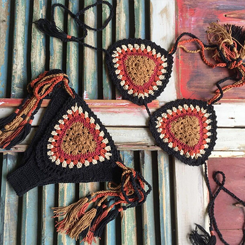 styled with self-tie sides. Moreover, the strings of this bikini set are designed with tassels.