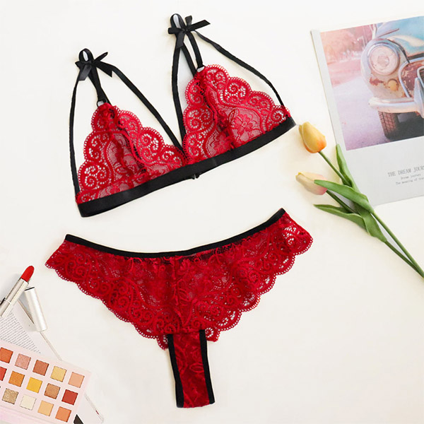 Sexy Lace Bowtie Two-piece Lingerie Set