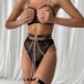 Sexy Lace Chain Cut Out Four-piece Lingerie Set