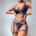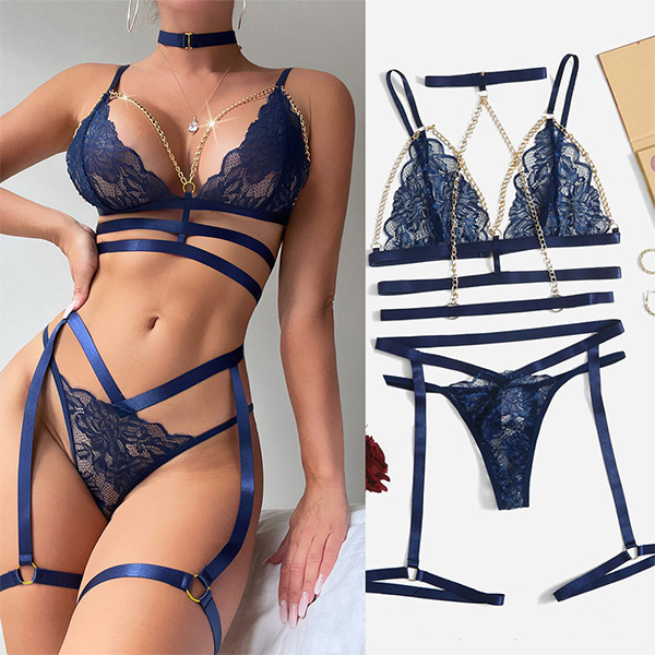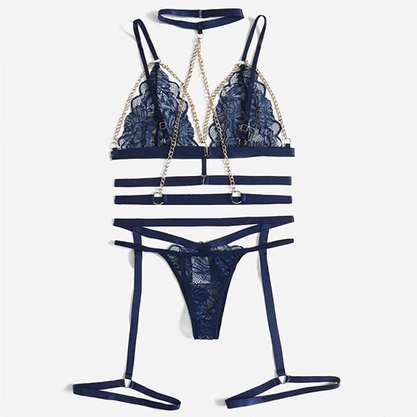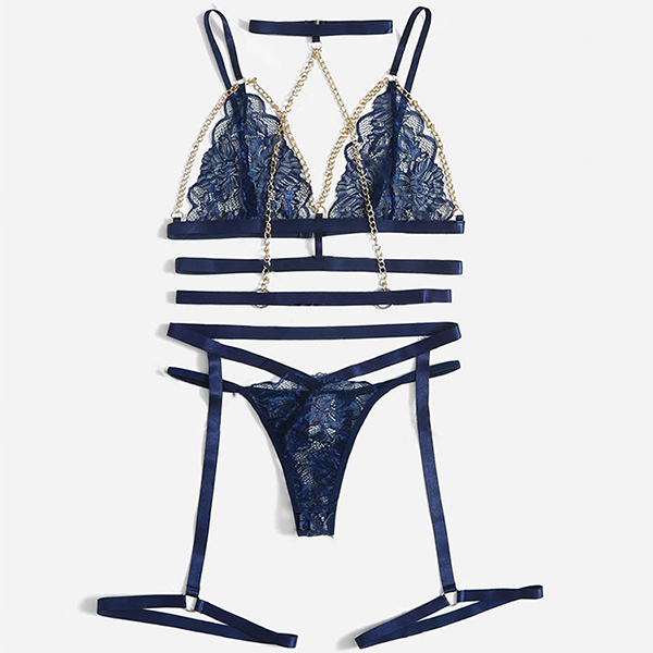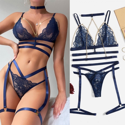 Sexy Lace Chain Hollowout Three-piece Lingerie Set
