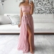 Comes with a sweet pink tone,which can better portray your feminine side. It consists of a crop top and a high waist slit hem skirt,this two-piece set is a good weapon to demonstrate your perfect figure. No matter when and where you are,you can easily be the focus in this two-piece set!