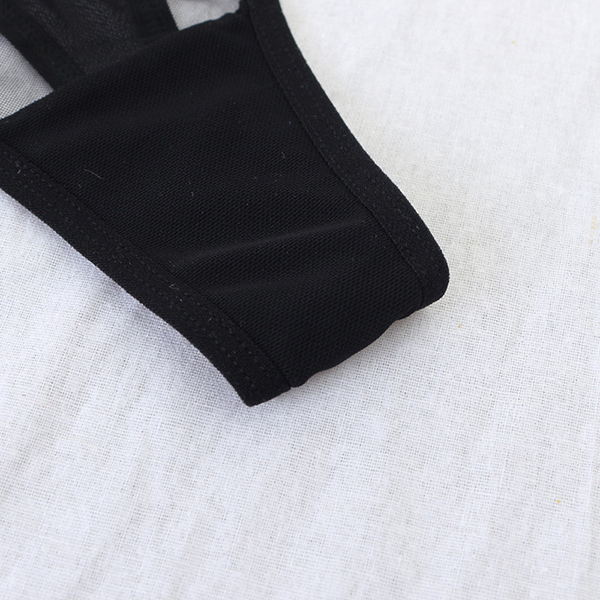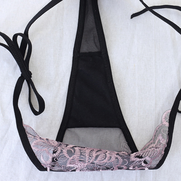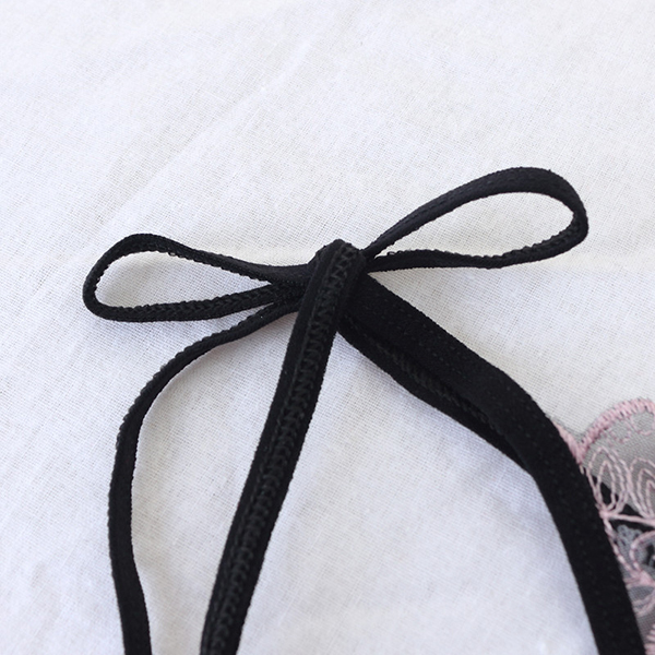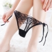 Sexy Lace Embroidery Lace-Up Transparent See-Through Mesh Thong T-Pants