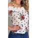 Sexy Lace Spliced 3/4 Sleeve Boat Neck Dots Printed Sling Top