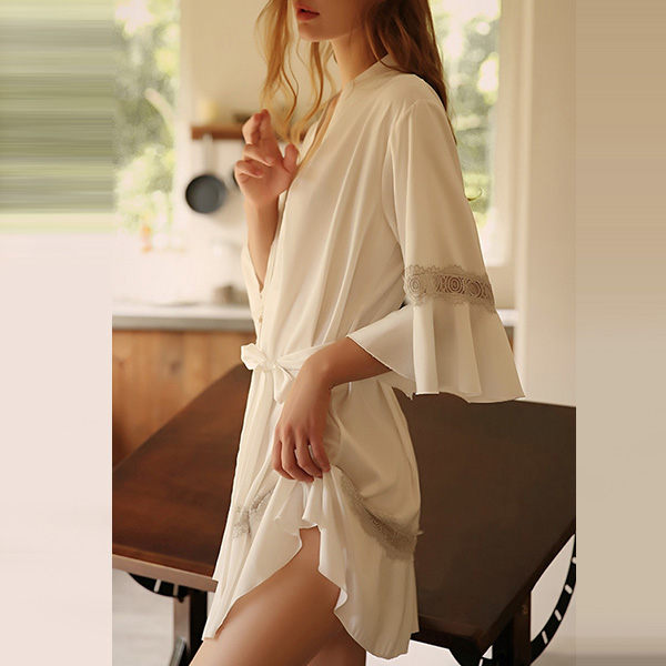 Sexy Lace Spliced 3/4 Trumpet Sleeve Tie-belt Robe