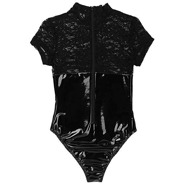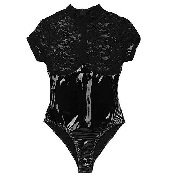 Sexy Lace Spliced Artificial Leather PU Lingerie Bodysuit