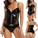Sexy Lace Spliced Artificial Leather PU Two-piece Lingerie Set