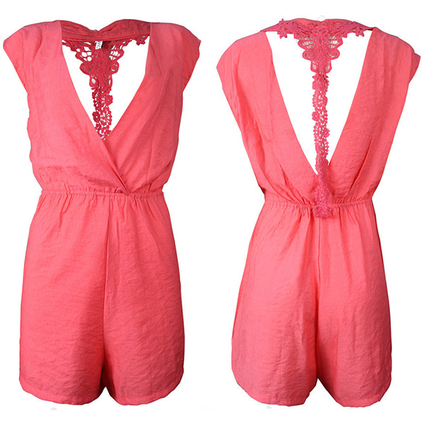 When you don't like dresses,you can turn to this sleeveless romper. Solid color style,its backless,deep v-neck and lace spliced