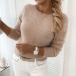 Sexy Lace Spliced Backless Long Sleeve Round Neck Knit Top