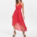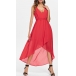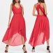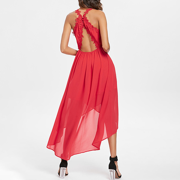 Sexy Lace Spliced Backless V-neck High-low Hem Solid Color Chiffon Dress